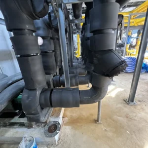 Cold insulation jackets use closed-cell foam insulation to prevent condensation and ice formation on below-ambient temperature equipment. The vapor barrier outer jacket is critical to preventing moisture migration into the insulation layer. Fully removable design enables inspection and maintenance access without material replacement.